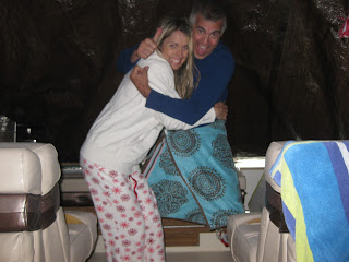 We could not get done fast enough and now in our thermals...YES…thermals and sweatshirts the end of June on beautiful Lake Shasta completely shut into our 24 foot boat.We were very thankful for our prepared food because the new grill was now going to have to wait until the storm blew over.We rocked, we talked, we ate, we napped and had truly quality time in our little shelter….this is where you know a relationship is a healthy one…teamwork and laughter through a crisis which turned out not to be…really.It was still our vacation and we were going to make the best of what nature brought our way...and we did.I was bummed that I could not be physically active as planned the first few days…but it was what it was…so there Darla.So… foot in face, raging storm, playing balance without a stitch on in the middle of the night on top of a boat, tarp on, bungee cords securing our shelter and shut in this rocking tiny house….it could make for a funny movie…don’t you think.Our adventure started on a Monday and the storm broke on Wednesday…we were able to un-tarp and poke our heads outside….IT WAS ON.I brought my resistance bands and was able to do a little workout and swim like crazy.